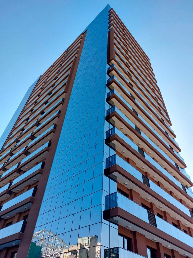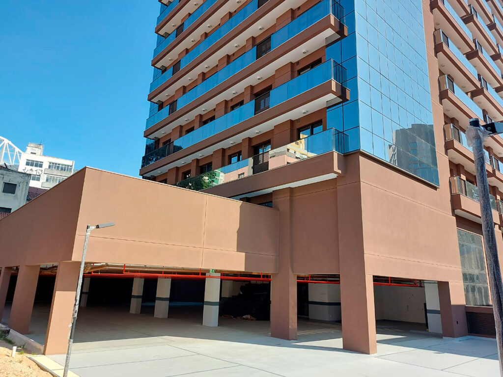 A imponente fachada destaca-se na região graças ao seu alto padrão de acabamento, com a modernidade de um novo marco arquitetônico.